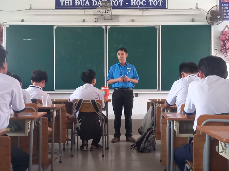 Thầy Nguyễn Văn Hùng - Trưởng khoa Nghiệp vụ và Đối ngoại đang giải đáp và tư vấn cho học sinh