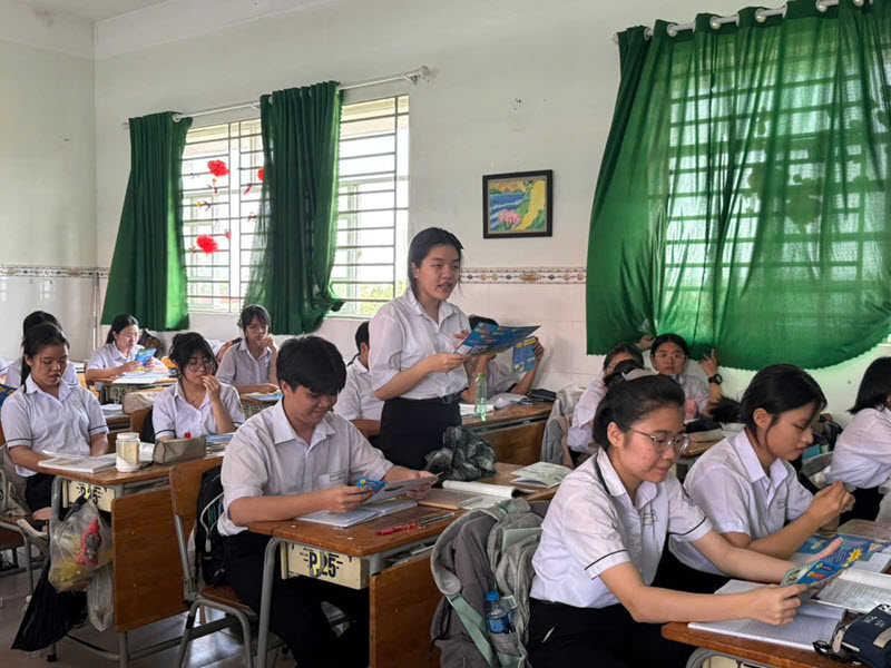 Cô Nguyễn Thanh Tâm đang tư vấn và giới thiệu các ngành nghề cho học sinh