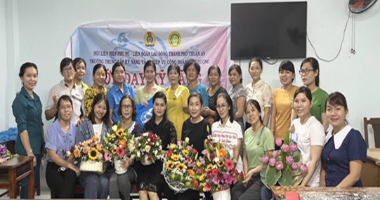 Tối ngày 18/8/2022, tại trường Trung cấp Kỹ thuật và Nghiệp vụ Công đoàn Bình Dương, Hội LHPN thành phố Thuận An phối hợp với LĐLĐ thành phố Thuận An tổ chức bế giảng lớp dạy Tỉa củ quả, Cắm hoa và Trang điểm miễn phí cho các chị em hội viên phụ nữ, đoàn viên CNVCLĐ trên địa bàn Thành phố.