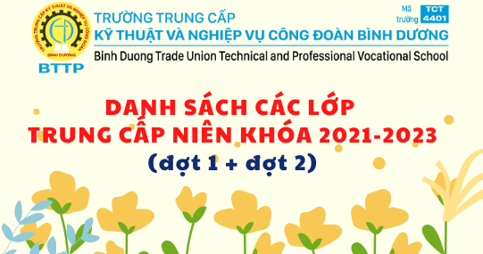 Trường Trung cấp Kỹ thuật và Nghiệp vụ Công đoàn Bình Dương công bố danh sách các lớp trung cấp niên khóa 2021-2023 (đợt 1 + đợt 2)