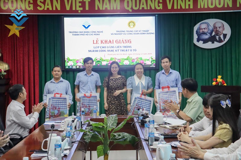 Sáng ngày 20/12/2025, Trường Trung cấp Kỹ thuật và Nghiệp vụ Công đoàn Bình Dương phối hợp với Trường Cao đẳng Công nghệ TP. Hồ Chí Minh long trọng tổ chức Lễ khai giảng lớp Cao đẳng liên thông ngành Công nghệ kỹ thuật ô tô, mở ra chặng đường học tập mới cho các học sinh đã tốt nghiệp trung cấp nghề Công nghệ ô tô.